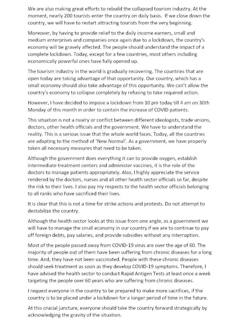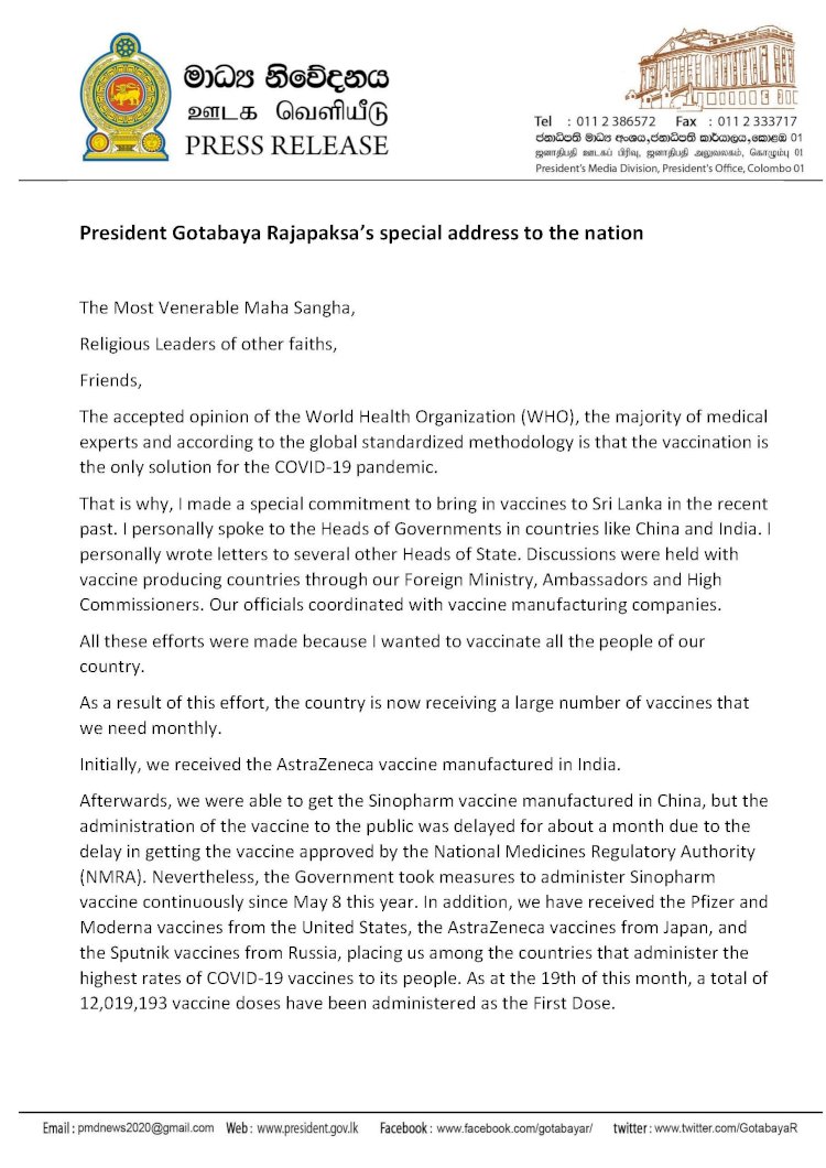 Full text of President Gotabaya Rajapaksa’s special address to the nation: